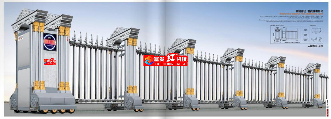 采用高強度不銹鋼主料18X60mm條紋料外有50mm圓管相襯,大橢圓中柱62X22mm順序排列著,還有上下平水25X25mm欖子加密連接,拱橋式的不銹鋼頭與橋墩的不銹鋼彎腳連接成輪中1020mm的八輪驅(qū)動,總寬1080mm的門中豪杰。