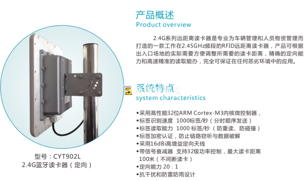 2.4G系列遠(yuǎn)距離讀卡器是專業(yè)為車輛管理和人員物資管理而打造的一款工作在2.45GHZ頻段的RFID讀卡器,產(chǎn)品可根據(jù)出入口場(chǎng)地的實(shí)際需要方便調(diào)整所需要的讀卡器距離,精確的定向能力和高速精準(zhǔn)的讀取能辦、完全可保證在任…